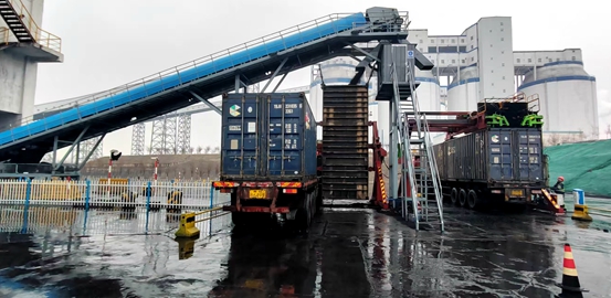 该集装箱翻转机借助液压或电动系统,可平稳抓取、固定集装箱并驱动其精确旋转,实现卧式与立式作业的安全转换,且适配多种规格集装箱,为后续输送提供便利。此前,沫煤集装箱装运需依托距离较远的火车站专用设施,存在等待时间长、环节多、周期长等问题。设备投用后,彻底改变原有装车模式,实现集装箱在运营厂内汽车站直接完成沫煤装载,大幅简化作业流程,缩短车辆等待与周转时间,保障装车作业连续高效,显著提升整体装运效率。运营层面,新模式加快了煤炭发运节奏,降低综合运营成本,同时通过“厂内直装”有效优化区域煤炭供应链响应能力。