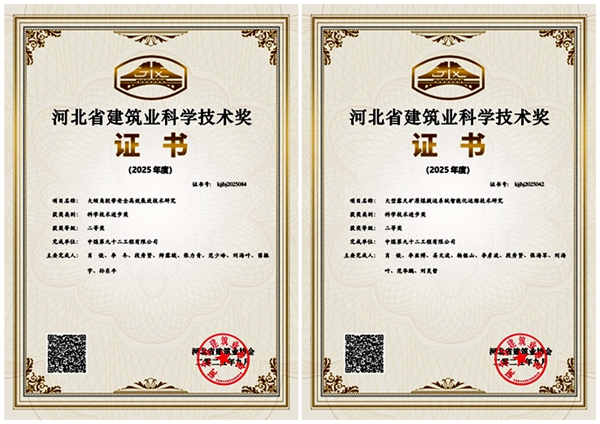 近日,公司两项创新技术成果荣获2025年河北省建筑业科学技术进步二等奖。