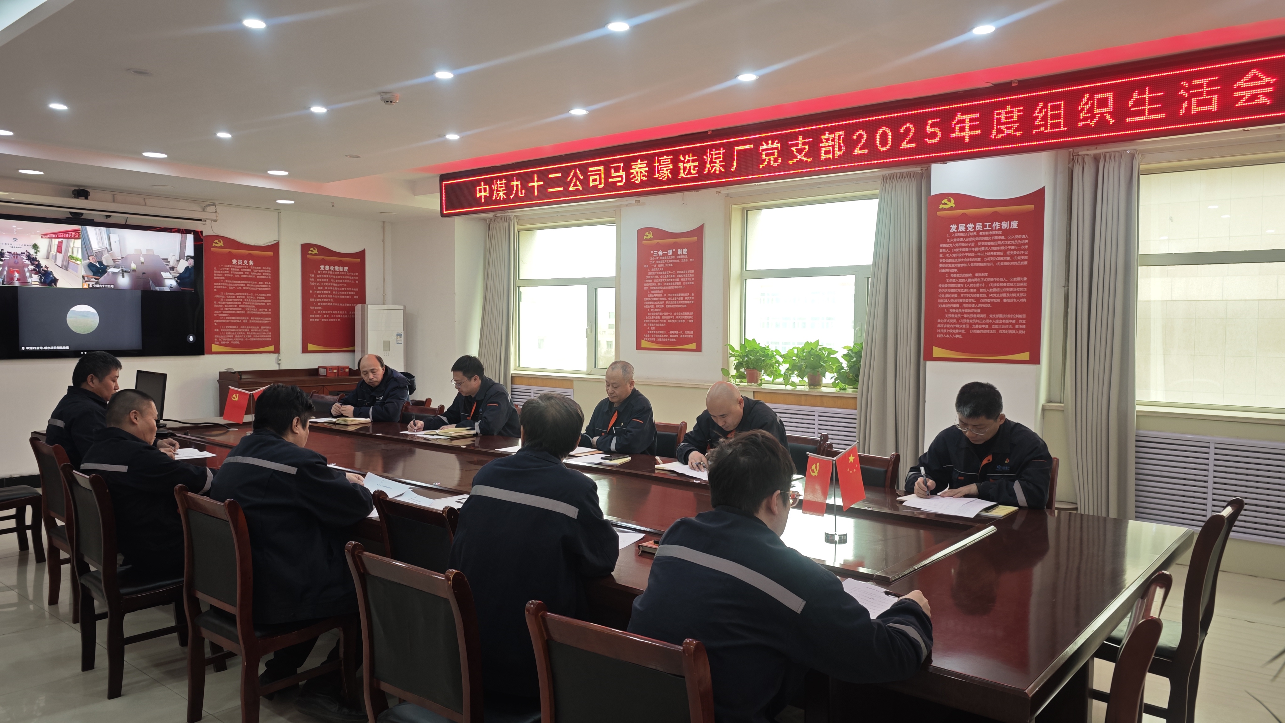 近日,马泰壕选煤厂党支部召开2025年度组织生活会暨民主评议党员大会。公司总经理郑业群到会指导,支部全体党员参加会议。