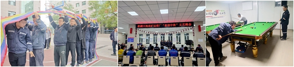 活动中,各项目部(厂)根据生产实际先后开展了文艺晚会、趣味活动、体育竞技等庆祝活动。其中,新疆天池南矿运营厂参演职工集中合唱了《我的中国心》,抒发了深沉的爱国之情;极具特色的民族舞蹈《黑走马》展现了新疆地区独特的文化魅力;趣味活动进一步增强了全体干部职工的凝聚力与归属感。马泰壕选煤厂在参与业主方“无敌风火轮”团队竞赛中配合默契,取得了第3名的优异成绩;在乒乓球、五子棋等个人竞赛中,参赛职工奋勇争先,展现出中煤职工坚定的意志和奋发拼搏的精神。北疆项目部搭建乒乓球台和台球桌,为职工提供良好的交流平台,丰富了业余文化生活,缓解了工作压力,赢得了全体干部职工的好评。